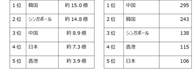 ■投資金額の上位5か国(金額:USドル) ■投資件数の上位5か国(件数)